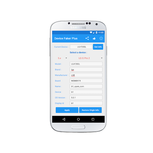 Device Faker allows you to spoof your device to make it appear to be a different device.So another app will see your phone as some other model.